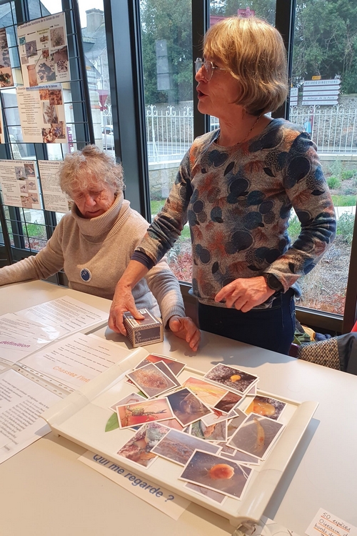 Nous avons enfin pu montrer, grâce au large espace qui nous était réservé, une grande partie de nos réalisations, et même des panneaux sur les différentes sortes d’estrans (rocheux, sableux, vaseux) datant de nos week-ends à la Briantais ! Ils n’ont pas pris une ride !!