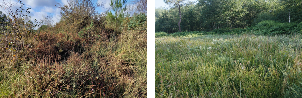 Lande en voie de fermeture (à gauche) et lande fonctionnelle (à droite)