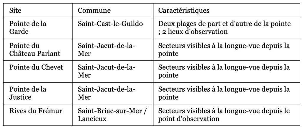 Cinq sites d’observation stratégiques