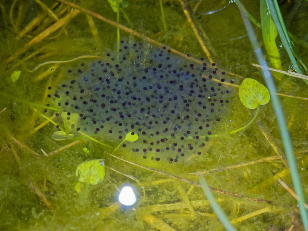 Image d’en-tête : grenouille rousse et sa ponte © Catherine Demay
