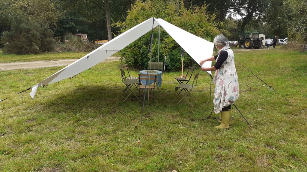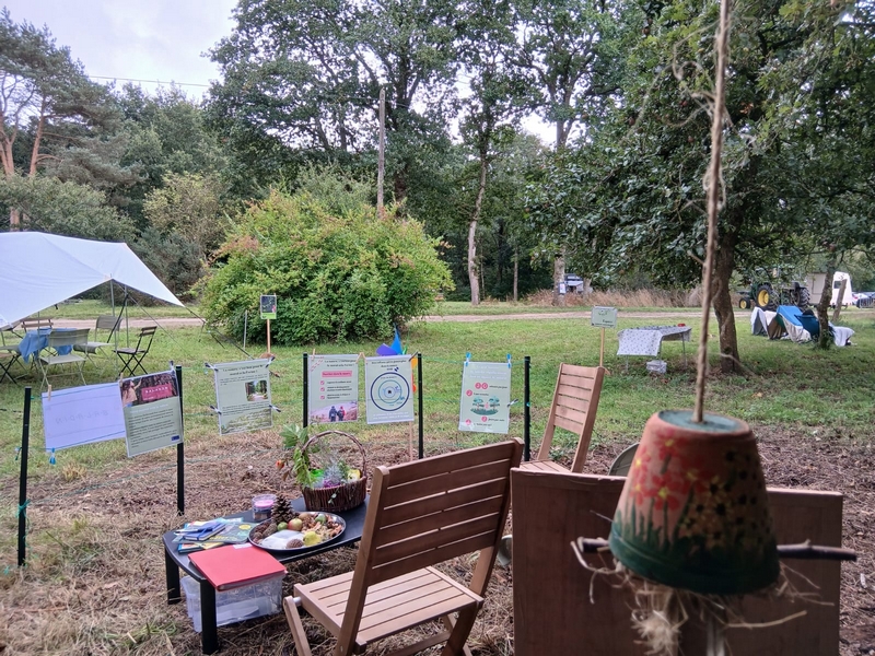 - Dernier lieu, l’espace Et Changeons, celui où les groupes s’installaient sous un toit de toile autour d’une petite table ronde, avec deux animateurs.