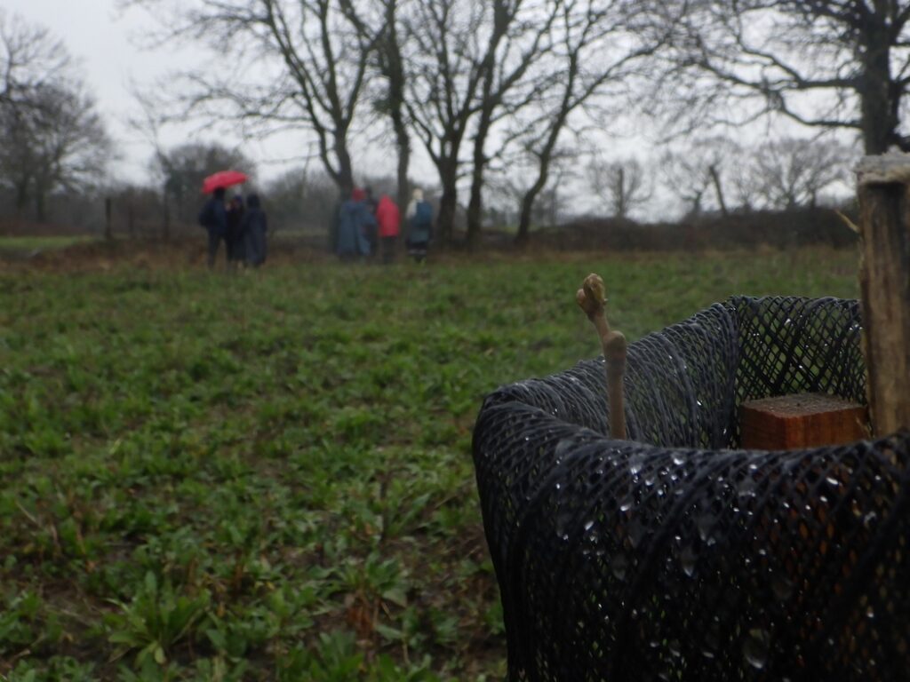 La pluie froide du début de matinée n’a pas découragé les 12 personnes motivées pour découvrir la botanique sur l’exploitation « Le Verger Givré » à Saint-Méloir-des-Ondes (35). Camille nous accueille et explique son projet de verger fruitier.