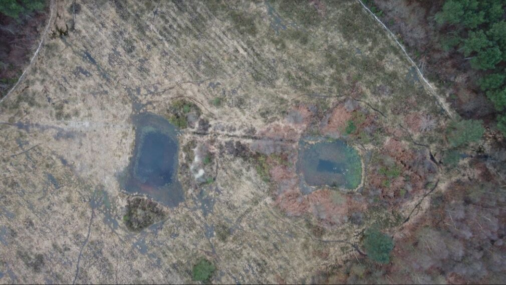 Photo d’en-tête : les deux mares des Grandes Landes vues du ciel – © B. Goguel, février 2022