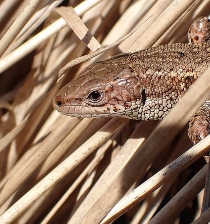 ...un petit reptile bien de chez nous, discret mais étonnant.Un habitué des milieux frais et humides : Contrairement à la plupart de ses cousins reptiles amateurs de chaleur, le lézard vivipare apprécie les landes humides, les tourbières et les prairies spongieuses. Sa robe brun-cuivrée, souvent ornée d’une ligne dorsale plus sombre, le rend presque invisible dans la végétation sèche de molinie.