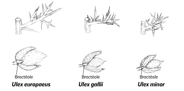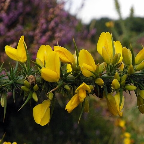 | Les trois ajoncs de Bretagne La Bretagne abrite trois espèces d’ajoncs, toutes adaptées à des milieux et des saisons différentes. L’ajonc d’Europe (Ulex europaeus), le plus grand et le plus répandu, fleurit dès la fin de l’hiver et illumine les talus de février à mai. On le rencontre surtout sur les sols secs et ensoleillés. L’ajonc nain (Ulex minor), plus discret et plus souple, se plaît dans les landes humides où il fleurit de juin à octobre, souvent aux côtés des bruyères et callunes. Enfin, l’ajonc de Le Gall (Ulex gallii), intermédiaire entre les deux, occupe les landes plus sèches et fleurit surtout en été. |