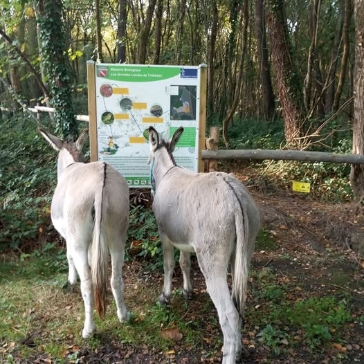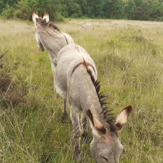 | De mi-juin à mi-septembre, les Grandes Landes ont accueilli cinq ânesses venues de Brusvily, confiées par André et Martine Maillard. Une transhumance toute locale, mais ô combien précieuse pour la réserve : ces paisibles travailleurs à grandes oreilles ont prêté leur appétit à la cause de la biodiversité. Au fil des semaines, ils ont brouté la molinie, cette grande graminée dominante qui, sans intervention, finit par étouffer la flore plus fragile. Ils ont aussi effeuillé et écorcé les jeunes saules, bourdaines et bouleaux, redonnant de la lumière à certains secteurs. En revanche, les ânes ont boudé les sous-bois, où la fougère-aigle a prospéré, non “foulée” par leur passage. C’est un bon indicateur pour ajuster, l’an prochain, la durée ou la répartition du pâturage afin de mieux contenir cette espèce envahissante. Entre deux siestes à l’abri du vent, nos compagnons à sabots ont trouvé un coin de fraîcheur inattendu : la plate-forme d’observation, dont ils ont un peu goûté et "grignoté" les marches par curiosité ! Rien de grave cependant et un rapide bricolage sur les marches a écarté le problème. En bref : un été de cohabitation réussie entre nature et animaux domestiques, où chacun a contribué, à sa manière, à l’entretien doux et vivant des Grandes Landes.