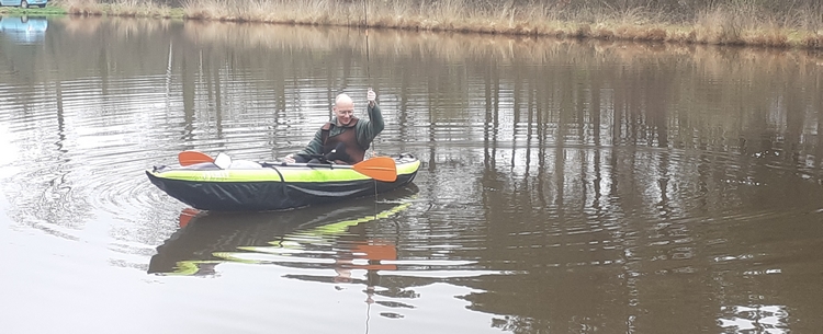 | Matthieu Péchard procédant à un levé bathymétrique sur l'étang. © Y. Meneux |