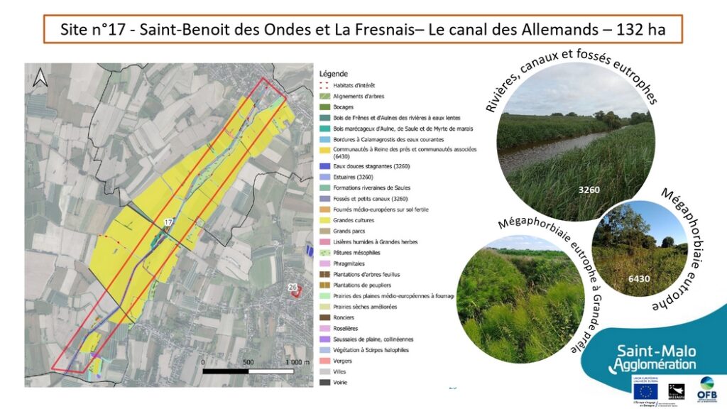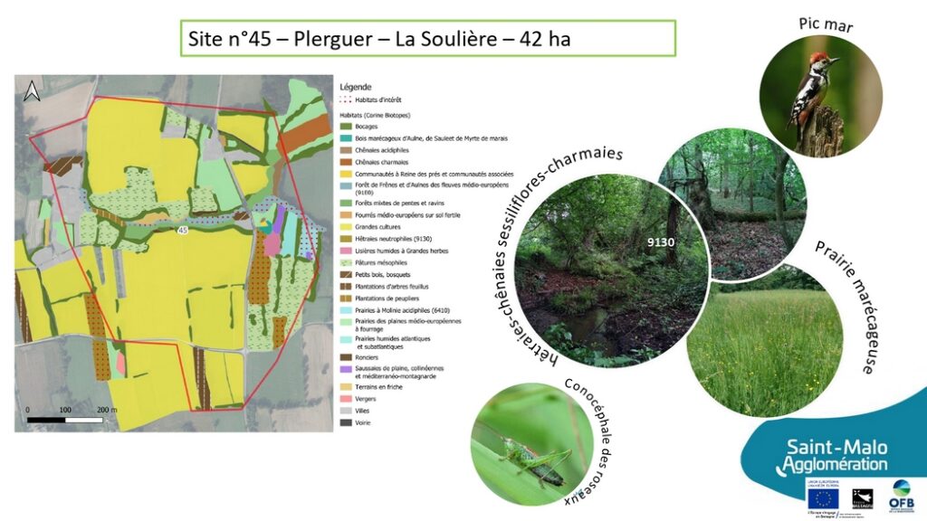 D’une superficie d’environ 45 hectares, ce site se situe sur le secteur du Clos Poulet, en lien direct avec la côte d’Émeraude. Il se caractérise par la présence de zones humides, de cours d’eau, de prairies et de boisements, formant un maillon important de la trame écologique littorale.