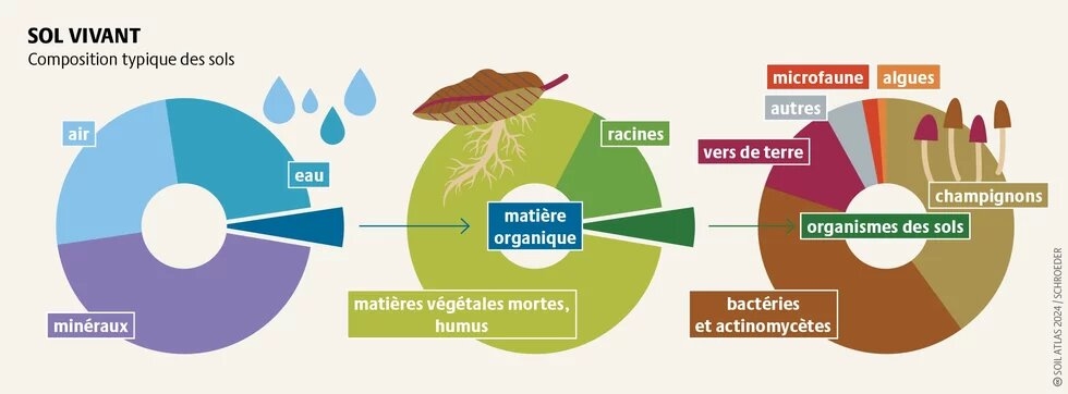 Un sol vivant peut retenir jusqu’à 30 à 60 % de son volume en eau.