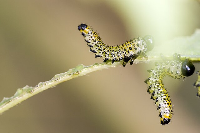 Fausse chenille – Larves de tenthrèdeHypena proboscidalis (noctuelle à museau)Callopistria juventina (noctuelle de la fougère)Insectes inféodés à la fougère aigle (Wikimedia Commons)