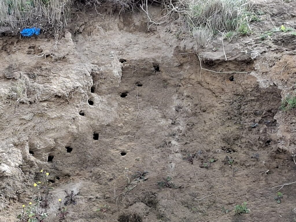 A la fin de printemps 2025, des hirondelles de rivage (Riparia riparia) avaient creusé 12 galeries dans la falaise friable de la plage du Minihic. Elles s’y étaient installées, avaient couvé puis nourri un certain nombre de poussins dans au moins 5 cavités. Au mois de septembre dernier, les hirondelles, adultes et juvéniles, ont entrepris leur migration d’automne vers l’Espagne et l’Afrique.